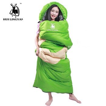 This sleeping bag can zip another one to appear a smiling face together, and it's ideal for spring winter and autumn. The bottom can be zipped off to air. OEM & ODM supported and contact us now